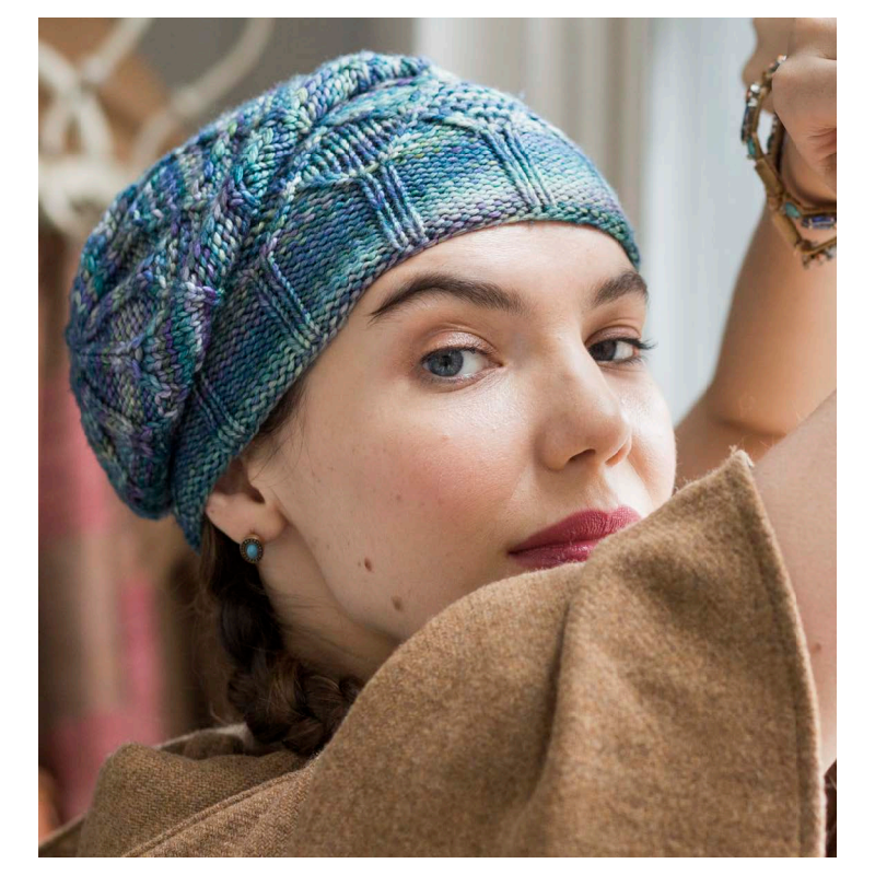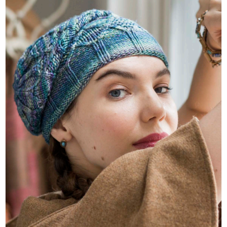 Deze mooie muts met kabelpatroon wordt gebreid van de Malabrigo Rios.