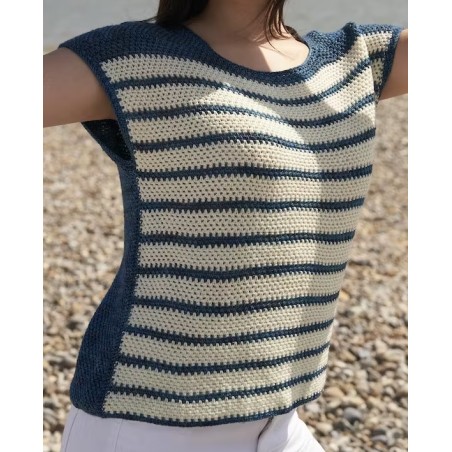 Deze zomerse top met een mooi streeppatroon wordt gehaakt van de Malabrigo Sock.