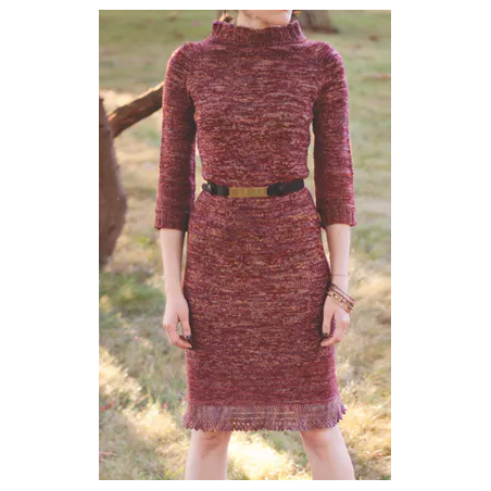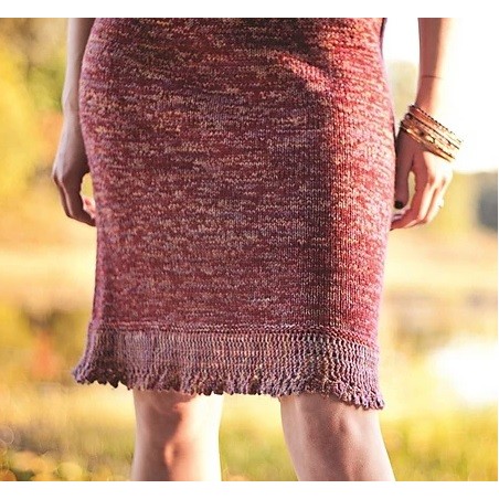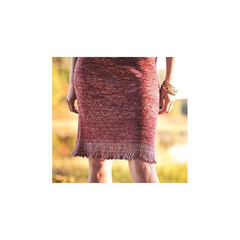 Deze leuke jurk met franjes wordt gebreid van de Malabrigo Sock. De jurk wordt gebreid met twee draden tegelijk van verschillende kleuren waardoor een gemêleerd effect ontstaat.