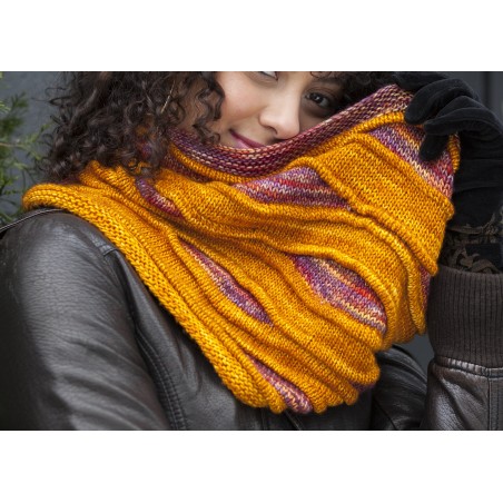 Deze kleurrijke omslagdoek wordt gebreid van de Rios van Malabrigo.