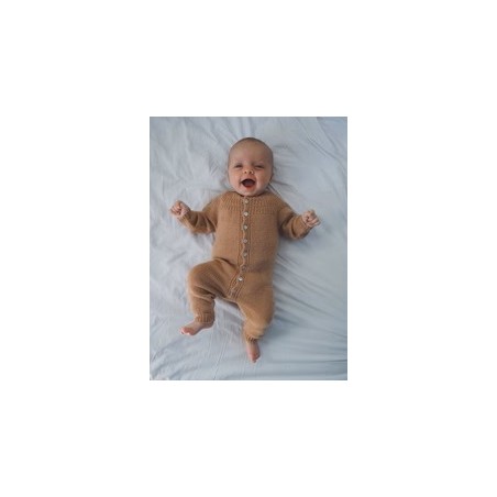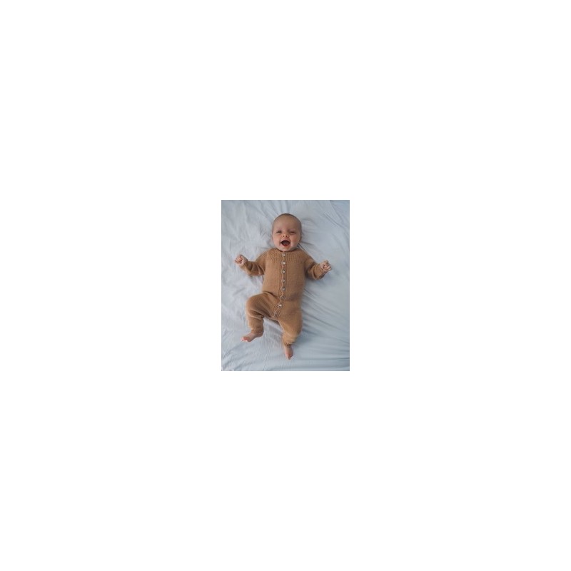 De Anker's Onesie van PetiteKnit wordt van boven naar beneden gebreid in tricotsteek.