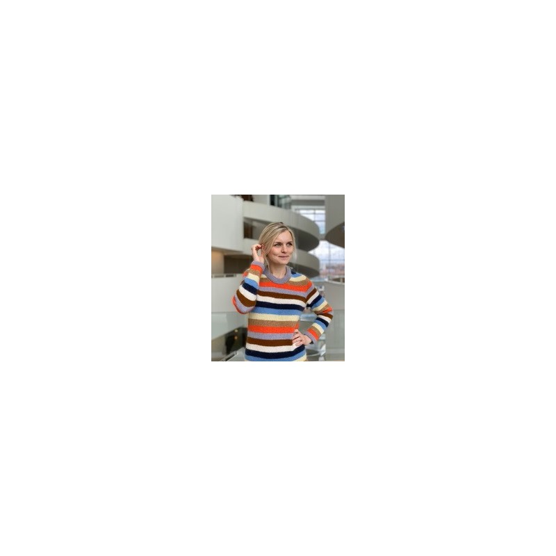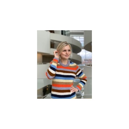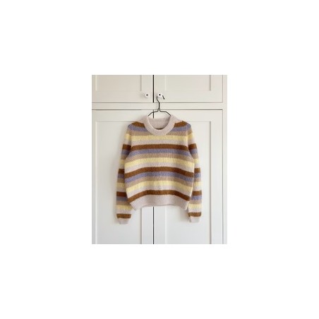 De Aros Sweater van PetiteKnit wordt van boven naar beneden gebreid. Eerst wordt de pas heen en weer gebreid op rondbreinaalden, waarbij de halslijn wordt gevormd, daarna wordt het werk samengevoegd om in het rond te worden gebreid.