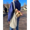 De Breeze Bag van PetiteKnit wordt van onder naar boven gebreid. De onderkant is plat en wordt als een groeiende cirkel in het rond gebreid op breinaalden zonder knop, waarbij de zijkanten van de tas in het rond worden gebreid in een kantpatroon op rondbreinaalden.