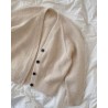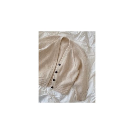 De Champagne Cardigan wordt van boven naar beneden gebreid met raglanmeerderingen op de pas. De halslijn van het vest is gevormd met verkorte toeren. De knoopsluitingen zijn dubbel gebreid met knoopsgaten aan de rechterkant.
