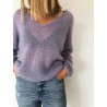 De Cumulus-blouse van PetiteKnit wordt van boven naar beneden gebreid in tricotsteek van een dubbele draad dun mohair/zijdegaren. Het design heeft een diepe ronde V-hals. Alle randen zijn afgewerkt met i-cord.