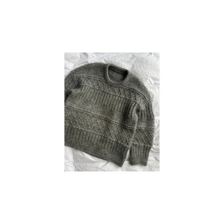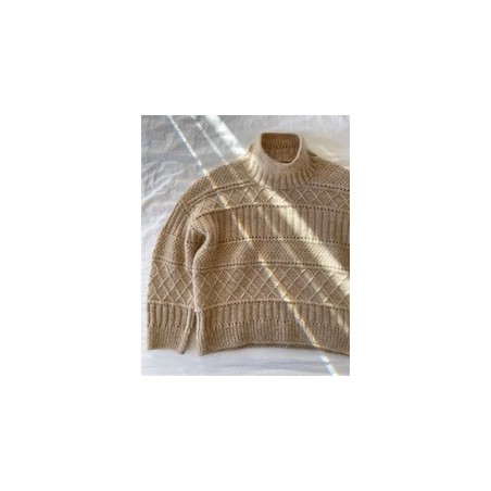 De Ingrid Sweater van PetiteKnit wordt van boven naar beneden gebreid in een recht- en averecht-textuurpatroon.