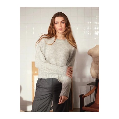 De Heather Sweater van Sandnes Garn wordt aan één stuk van boven naar beneden gebreid. Het schouderdeel wordt over dwars wordt gebreid. Daarna volgen de voorpanden die bij de hals worden samengevoegd. Vervolgens worden steken opgenomen langs het lange deel van het schouderdeel die samen met de voorpanden verder in het rond worden gebreid tot aan de onderkant. De mouwen en halsboord worden direct aangebreid.